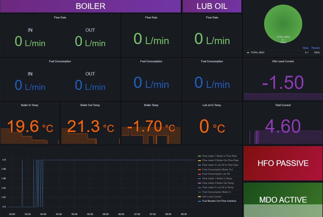 Uzmar vessel management software provides the ability to reach all the data collected from the equipments mounted on the vessel and being able to access this information for the required time range or even get the history and get them as reports.